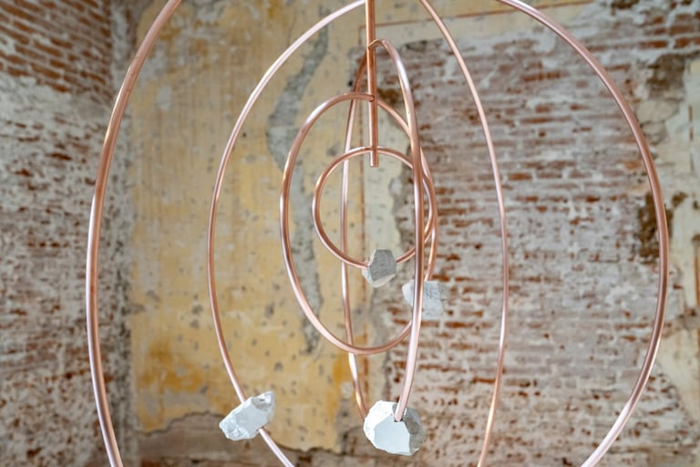 La exploración de Karian Amaya (Chihuahua, 1986) se centra en las complejas interrelaciones entre los materiales que emplea, específicamente el cobre y el mármol, y cómo estos reflejan la transformación del paisaje provocada por la intervención humana, así como las consiguientes repercusiones sociales y territoriales que impactan en las comunidades locales. En el corazón de la Riviera Maya, donde la selva exuberante abraza a la comunidad de Akumal, se encuentra el estudio de la artista Lorena Ancona (Quintana Roo, 1981). Este refugio creativo se erige como un santuario en el que emergen obras de las profundidades de la tierra, como ecos ancestrales de las cavernas y cenotes que salpican el paisaje. Cada pieza de Ancona es un testimonio vivo de la identidad, la memoria y la cosmovisión de los pueblos mayas. La obra de Paula Cortázar (Monterrey, 1991) se sitúa en la intersección entre la abstracción y la figuración, con un lenguaje escultórico caracterizado por formas estilizadas y simplificadas que evocan y establecen analogías con los vestigios y procesos observados en la naturaleza. Mientras tanto, Cynthia Gutiérrez (Jalisco, 1978) erige sus esculturas e instalaciones como monumentos a la reflexión crítica, explorando las estructuras que cimientan nuestro mundo tanto en lo tangible como en lo simbólico. Desde su estudio en Guadalajara, la artista sumerge su pensamiento en la construcción de la memoria colectiva, la identidad nacional, la noción de progreso y los engranajes de legitimación que modelan el arte y la cultura. Perla Krauze (México, 1958), con su sensibilidad única, entabla un diálogo íntimo con cada rincón que habita. A través de recorridos y mapeos, recolecta fragmentos de realidad –imágenes y objetos– que luego entreteje en sus piezas, creando un archivo arqueológico de la memoria de cada lugar, un testimonio del paso del tiempo y la huella humana.