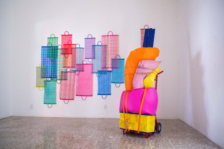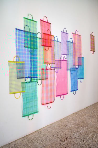 En esta exposición, la artista danesa utiliza materiales contrastantes, como el papel maché y el plexiglás. Con el primero refiere su propia práctica artística y la emparienta con la tradición artesanal mexicana. Con el acrílico trabaja la luz y su movimiento, revelando los cambios del espectro de colores que suceden a lo largo del día, poniendo como protagonistas de estas piezas al viento y sol. Qué fue – qué es se apodera de la arquitectura de La Clínica, en un trabajo artístico que estimula tanto los sentidos como la mente.