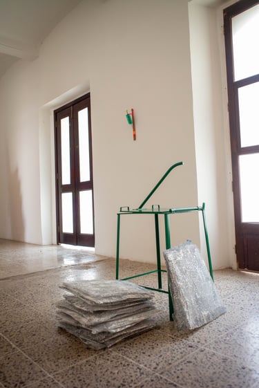 Qué fue – qué es de Gitte Svendsen (Dinamarca), es una exposición que muestra el trabajo realizado durante su residencia en La Clínica (Oaxaca, México, 2023), y que se complementa con algunas piezas de bordado tufting hechas en el estudio de su ciudad natal.