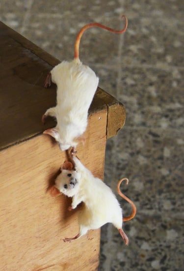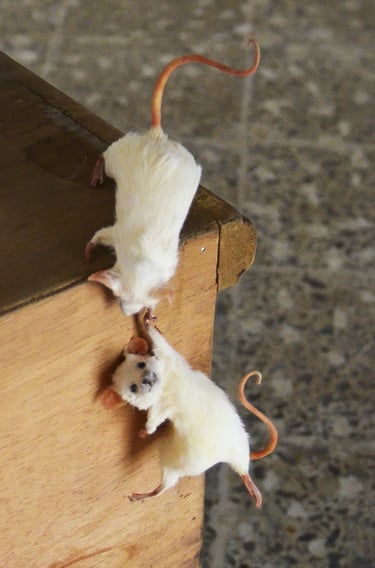 Liam Wilson interpretó la novela Infinite Jest varias veces, un libro situado en un futuro distópico no demasiado desconocido donde no hay alternativas a los modos del productor y el consumidor, un binario que parece cada vez más ineludible en un mundo de diversión infinita. Encima de esta pila de libros un ratón se aferra a la torre y el espectador se queda pensando qué papel juegan estos dos roedores en la sociedad del consumismo.